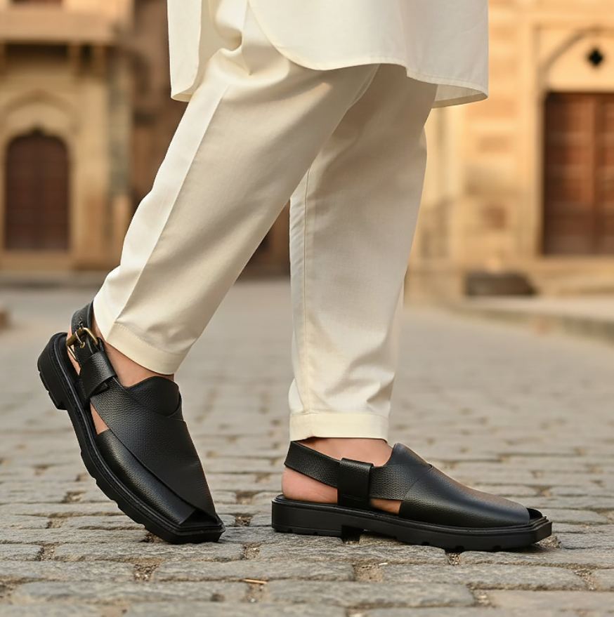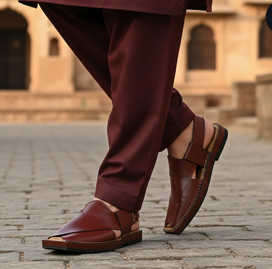Over time, this footwear transitioned from cultural necessity to national fashion staple. Today, the men peshawari chappal is proudly worn across Pakistan — from weddings to Eid celebrations, Friday prayers to formal gatherings.